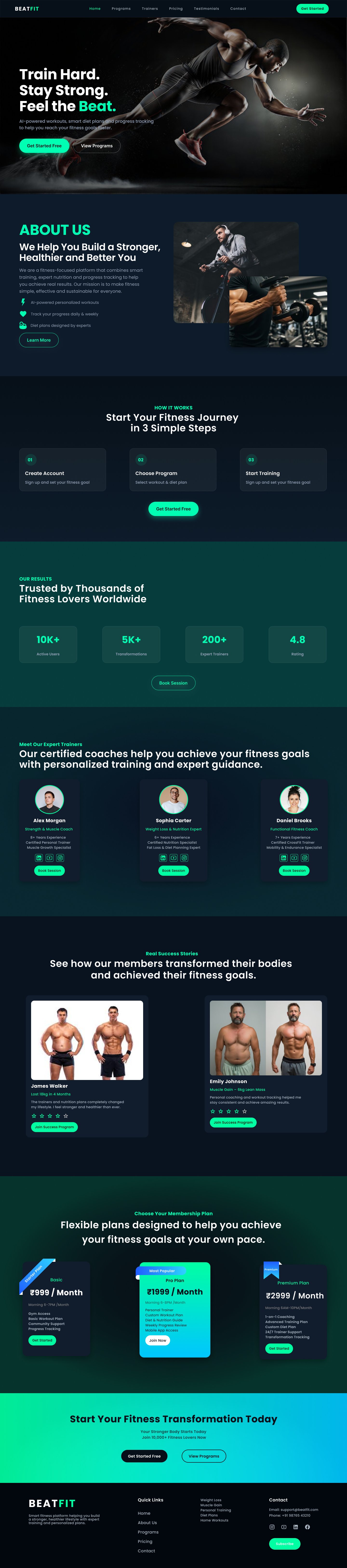 BEATFIT is a modern, high-converting fitness landing page designed for gyms and personal trainers.